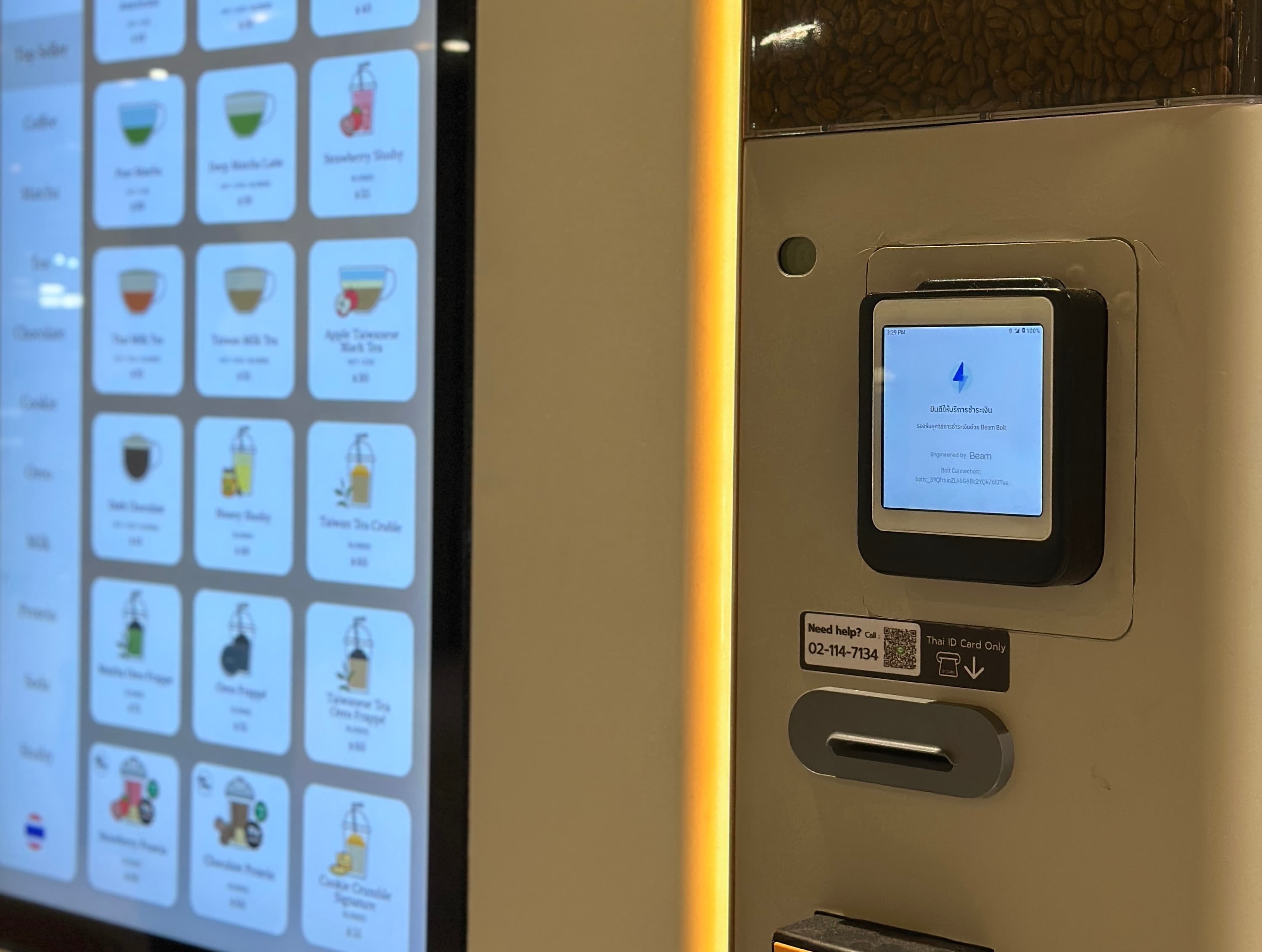 ‘เต่าบิน’ (TAO BIN) แบรนด์เครื่องดื่มตู้อัตโนมัติที่กำลังเติบโตอย่างรวดเร็วในไทย มองเห็นความท้าทายนี้ และเลือกใช้ Beam Bolt+ เพื่อแก้ปัญหา friction ที่เกิดขึ้น ณ จุดชำระเงิน โดยเปิดรับทุกวิธีการจ่ายเงินบนแพลตฟอร์มเดียว ไม่ว่าจะเป็นบัตรเครดิต Visa, Mastercard, Amex, ไปจนถึงอีวอลเล็ต Alipay และ WeChat Pay สำหรับนักท่องเที่ยวชาวจีน ทำให้ทุกคนที่เดินผ่านตู้เต่าบิน สามารถจ่ายได้ทันที ไม่ว่าจะมาจากที่ไหน