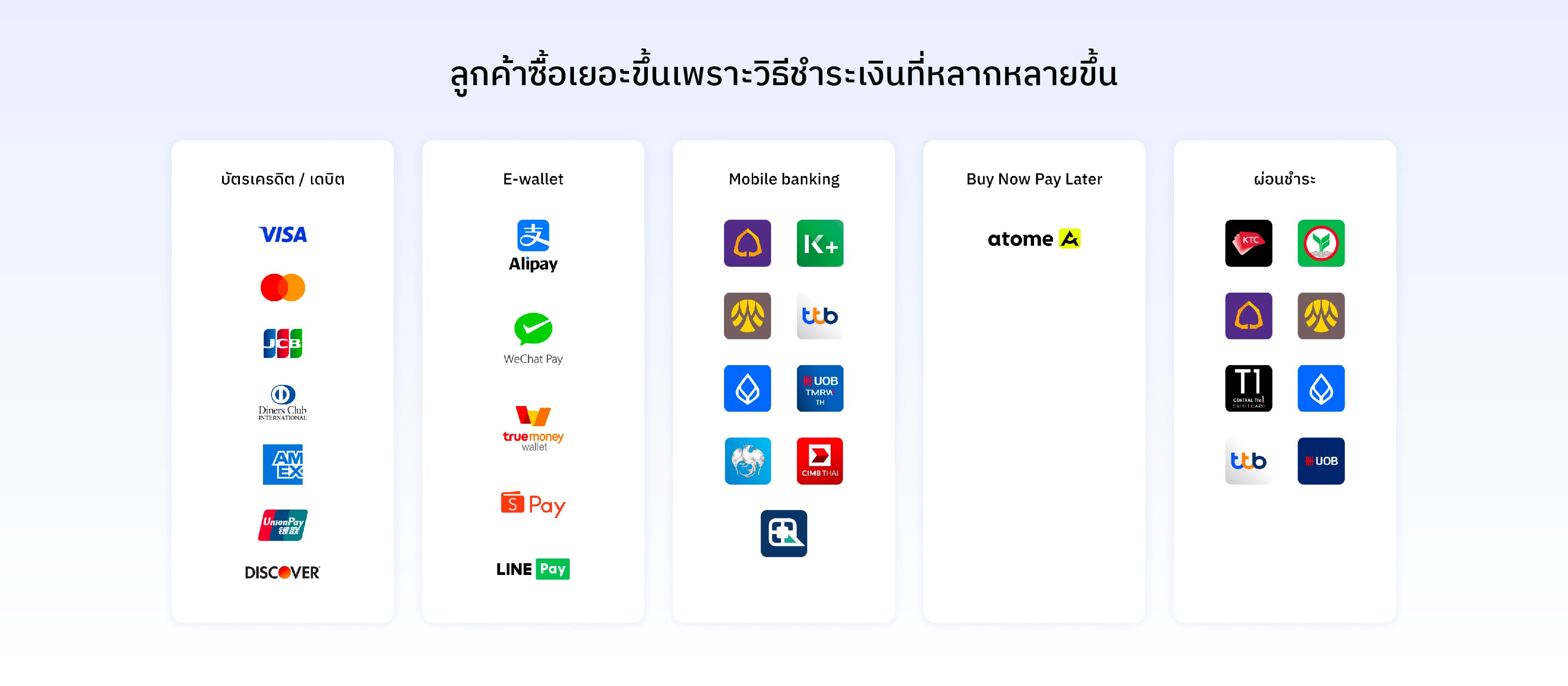 มีช่องทางการชำระเงินให้เลือกหลากหลาย: ลูกค้าสามารถเลือกช่องทางการชำระเงินที่ต้องการได้